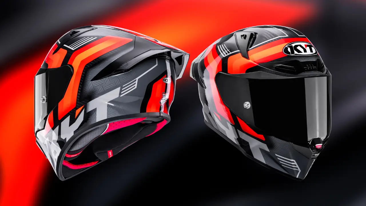 The KYT R1R helmet comes with MotoGP-derived aero, three years of wind tunnel testing, reduced drag, and high-speed stability for road and track riders.